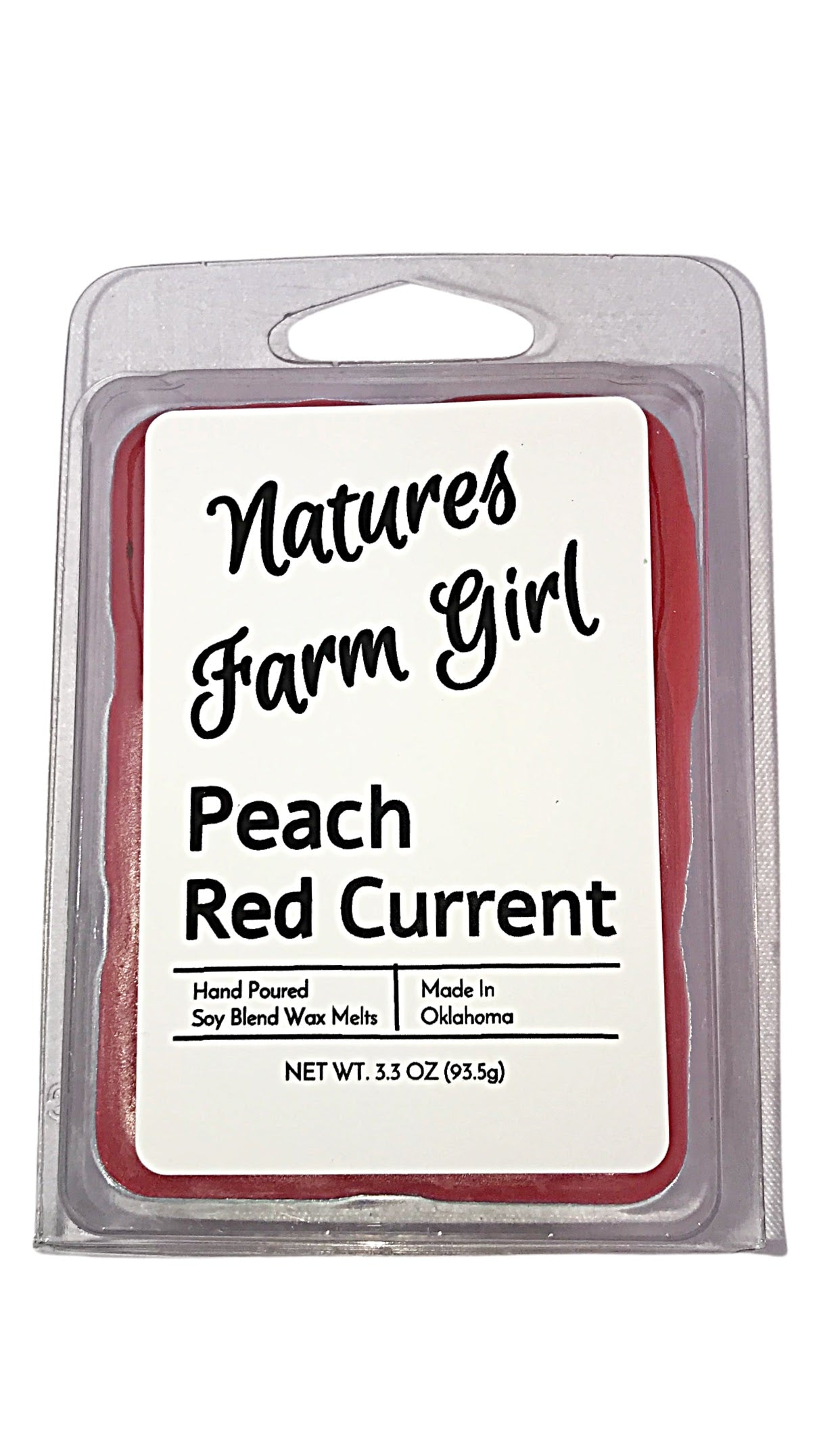 Mouth watering peach balanced with sparkling redcurrants , a unique berry fragrance that is so divine. In a 3.5oz clam shell hand pored in the heart of Oklahoma just for you.