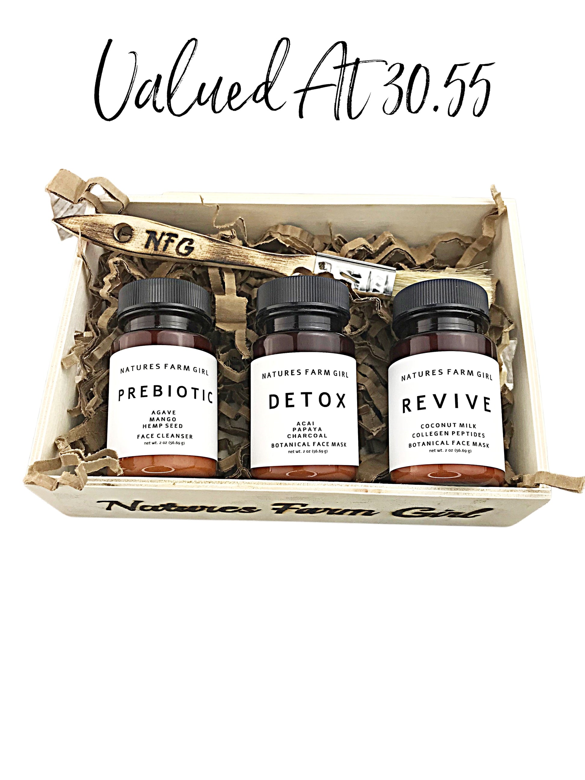 Prebiotics Face Cleanser, Detox Face Mask, Revive Face Mask For Men all as a gift set. This gift set is packed with skin care benefits. Our use of natural herbs continues a centuries old practice of production, which has been tested through time.