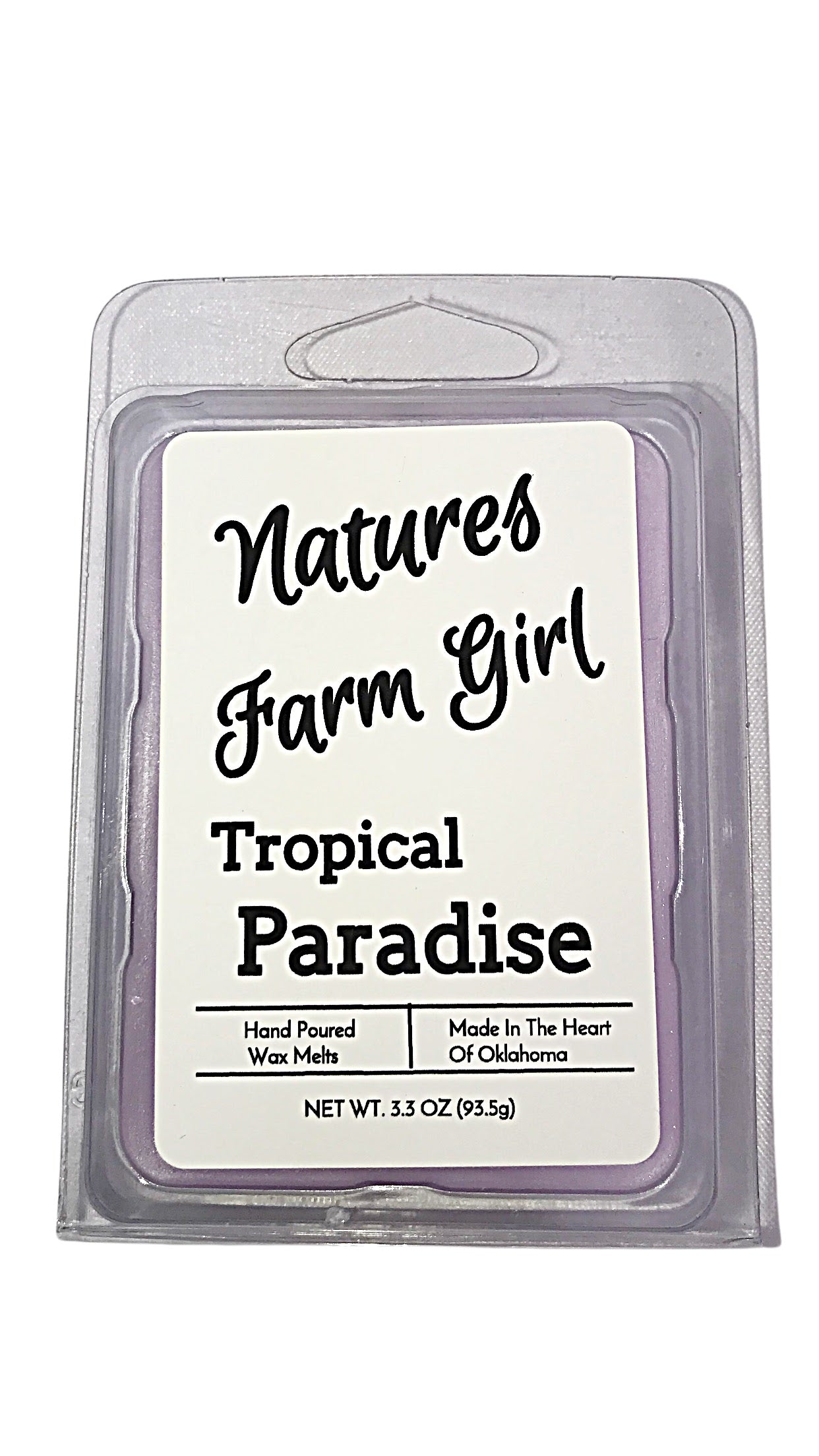 Creamy coconut blended with tropical fruits for an inviting fragrance that will whisk you away. A 3.5oz clam shell hand pored in the heart of Oklahoma just for you.